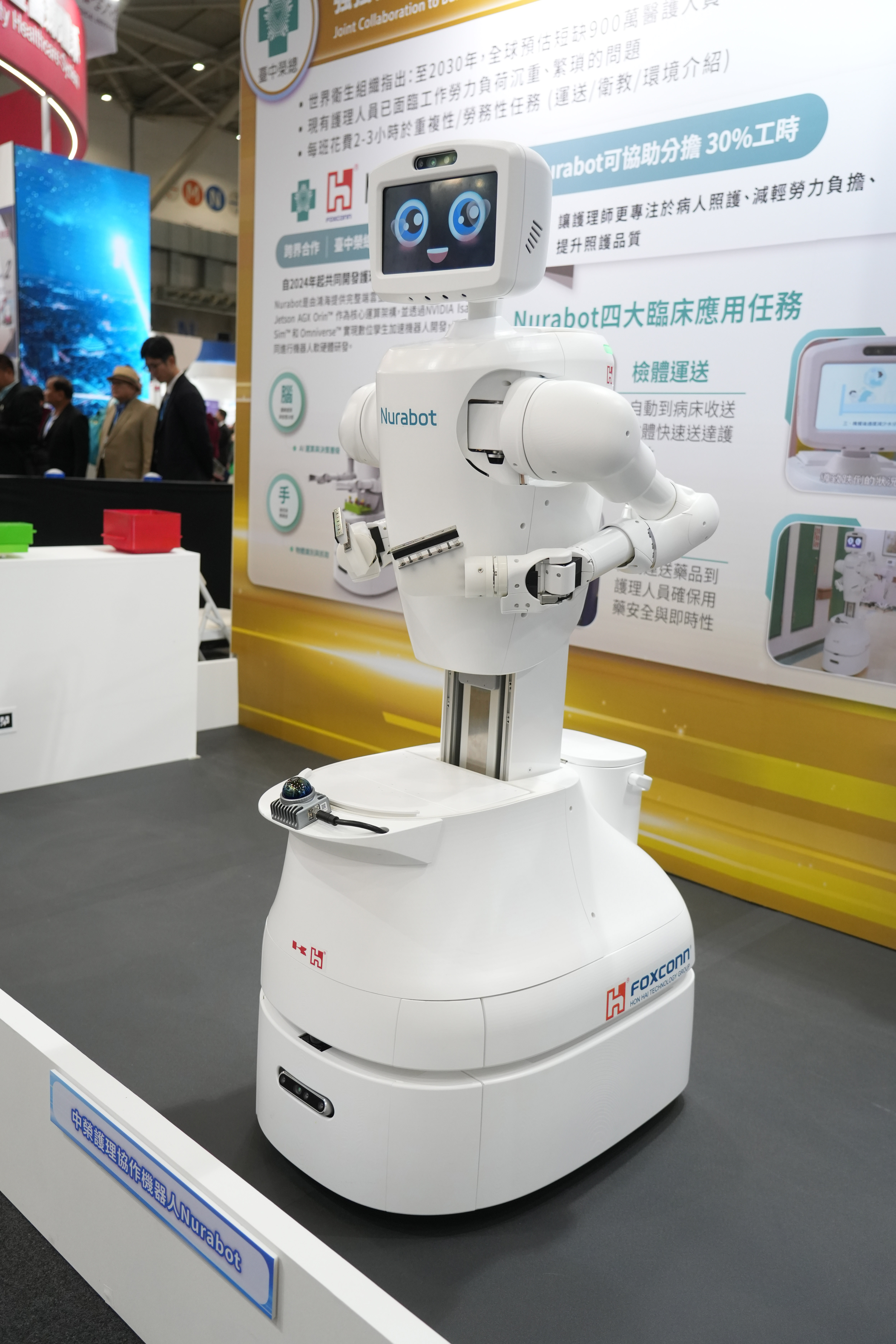 臺中榮總與鴻海團隊於會上分享,護理協作機器人Nurabot已完成歷經四個多月的多階段臨床場域壓力測試,正式上線,象徵智慧醫療機器人正式進入臨床日常運作的重要里程碑。這也代表「四朵雲協作架構」全面落地——由院內HIS私有雲負責臨床流程銜接、NVIDIA Jetson AGX Orin邊緣運算雲提供即時決策能力、NVIDIA Omniverse數位孿生雲進行模擬與調校、FoxBrain支援智能任務分配與模型更新,透過四雲協同與臨床驗證,Nurabot不僅提升醫院營運韌性,更以溫情協作守護第一線護理人力。Nurabot亦於醫療科技展期間,在南港展覽館一館4樓臺中榮民總醫院攤位L631a同步展出,讓現場醫護與民眾能近距離感受智慧醫院的最新實踐。