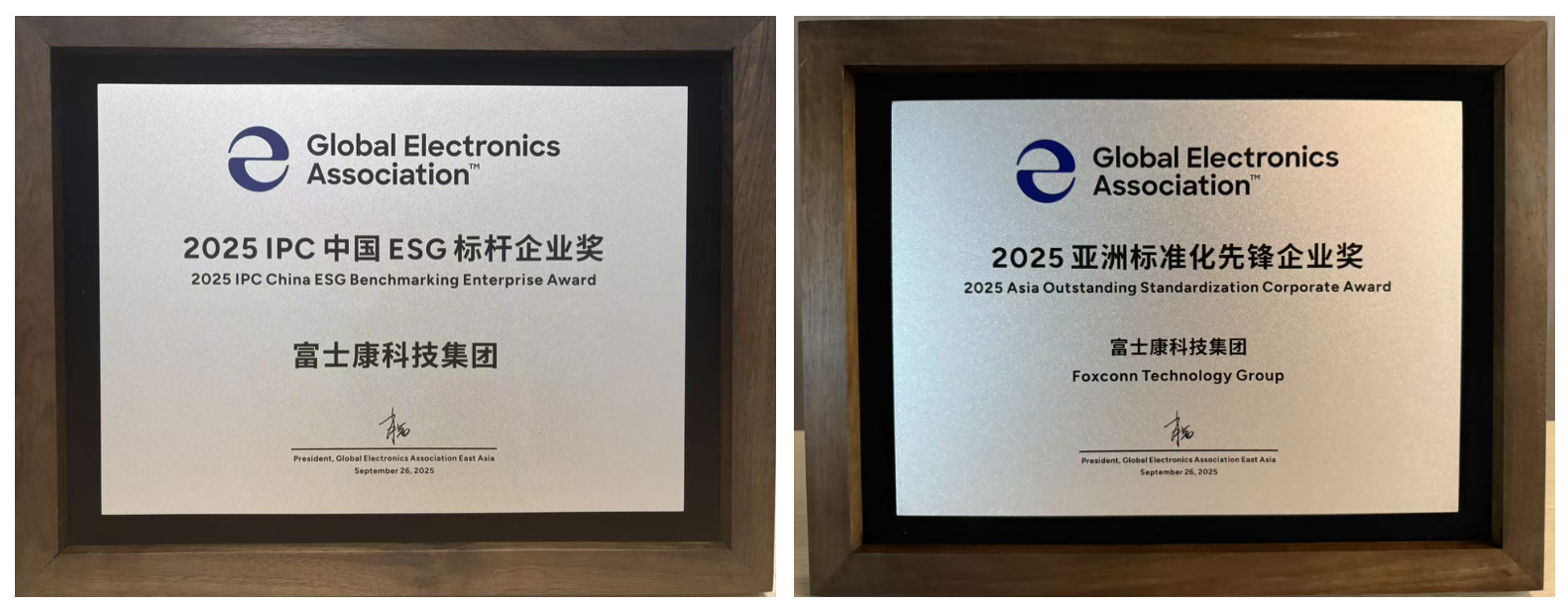 2025年9月26日,上海——在由IPC國際電子工業聯接協會與上海市浦東新區質量技術協會共同主辦的2025 IPC CEMAC電子制造年會上,鴻海科技集團憑借在ESG領域的持續深耕與卓越表現,再度榮獲「2025 IPC中國ESG標桿企業獎」及「亞洲標準化先鋒企業獎」。本屆大會以「共塑可持續未來(Shaping a Sustainable Future)」為主題,匯聚國內外電子制造龍頭企業、專家學者,圍繞產業趨勢、經驗分享及前沿議題展開深入探討,並表彰在實踐中取得突出成就的企業。